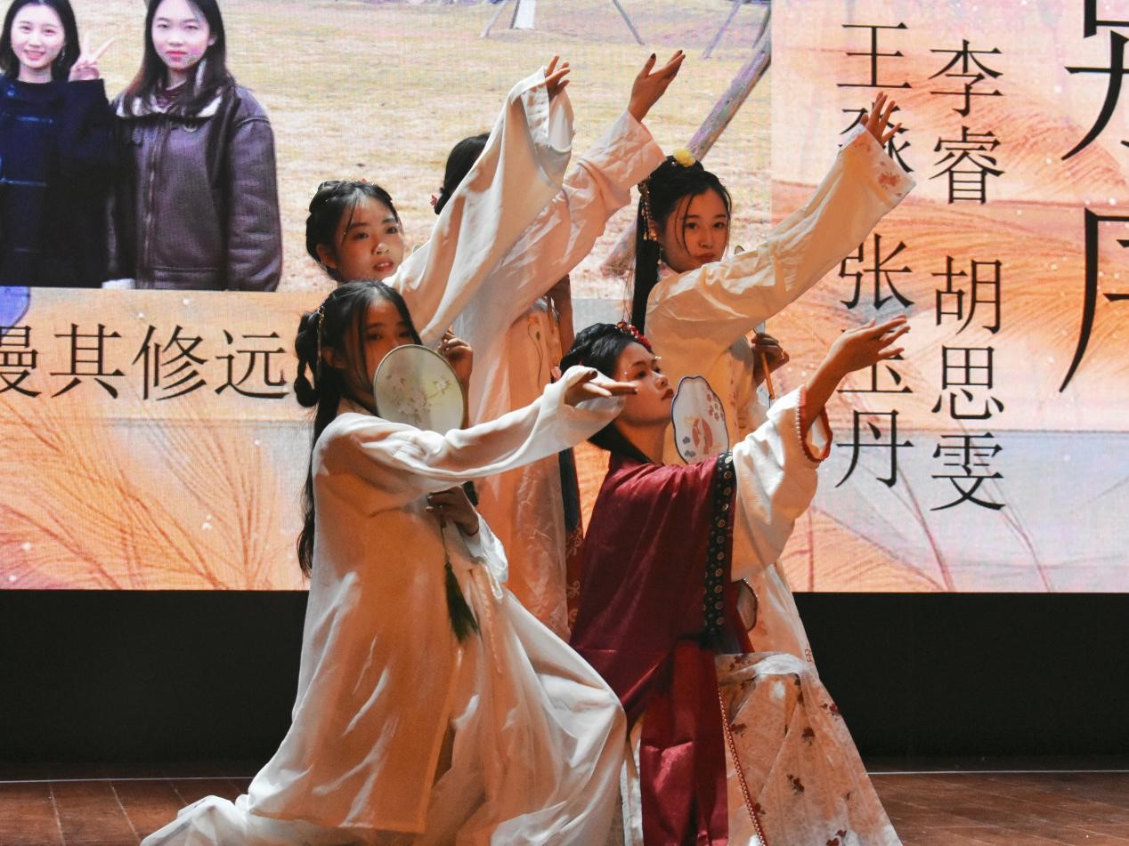 闪出光芒,舞出风采。韵律舞蹈之《向快乐出发》,十一位选手伴随欢快音符迈整齐步伐,用快乐气息渲染现场。酷飒女团舞《More》《How You Like That》以极富动感的音乐配合激情舞姿将现场氛围推向高潮,点燃这个冬天第一把火。一曲古风扇舞《西楼别序》,只见舞者身姿亦舞动愈快,如玉素手同团扇婉转流连,裙裾同舞曲飘飞向远方。男女舞者高默契配合《大鱼海棠》,翩翩舞姿递深情,使国风色彩再次映入眼帘。《爱的华尔兹》多甜,一步一步向你靠近,一圈一圈贴近我心,男女搭档带来舞会盛典,如无限束流星划过校园夜空……