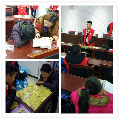 在精彩有趣、气氛活跃的读书分享之后,志愿者们由小朋友们开展五子棋比赛和象棋比赛,志愿者们在进行象棋比赛时,由衷的佩服小朋友们的象棋水平,紧张的气氛弥漫在教室内,尽管比赛紧张,但阵阵笑声回荡在教室内。