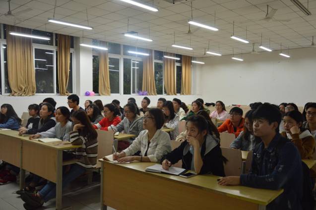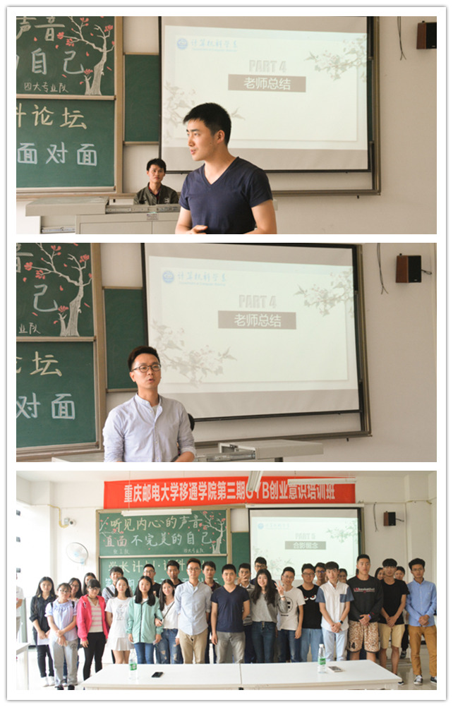 最后,陈育峰学长总结到,大学生在学校不仅要提升自己的学习能力,还要加强提高理解、沟通、执行等生存能力,不断挑战更高的目标,把每一次机会都当做一次历练,在磨炼中不断升华人格,在修行中不断完善自我。