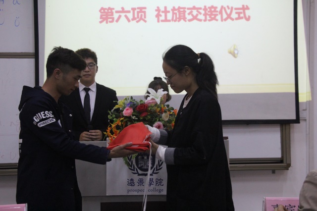 大会现场,各社团新老社长还做了社旗交接,一面面旗帜、一双双热切的眼神,社旗已不仅仅是一面旗帜,更多的是信任和传承。现任社团管理委员会会长朱倩旎代表全体二届二任做工作展望,她简要回顾了各社团本学年的招新情况,紧接着围绕委员会管理与服务、精品社团建设、品牌活动建设、考核规划等方面进行了阐述,她号召全体社团人,牢记远景社团“小而精”的社团理念,兢兢业业、勤勤恳恳做好自己的本职工作。希望大家齐心协力、合舟共济,让远景社团成为我们所有社团人大学时代的美好回忆。