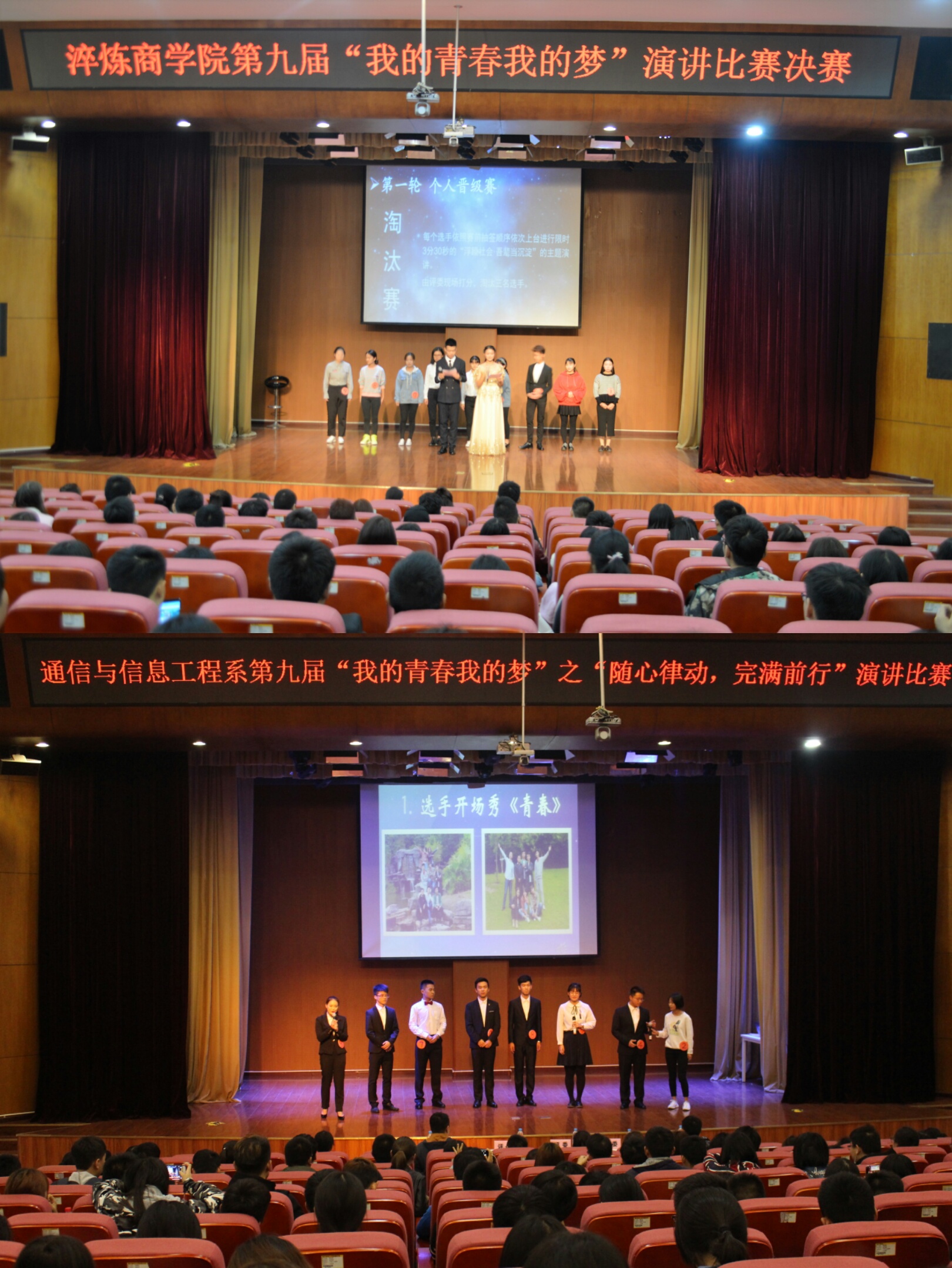在淬炼商学院和通信与信息工程系的比赛中,选手们将青春和梦想的概念缩小,切身谈到自己的一些故事,将他们的青春和梦想活灵活现的展现在我们面前,不再懒散,认真对待每件事情,懂得努力和坚持,懂得自己为什么出发,知道自己想要成为什么样的人。梦想就如一盏明灯,在我们彷徨的时候照亮我们前进的方向。这,是他们的青春和梦想,不断地超越自我,随心律动,完满前行。