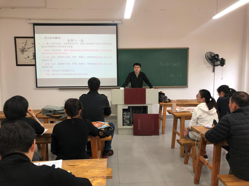 随后,冯懿老师就移通院〔2020〕154 号文件《课程考核管理规定》中修改完善的条款进行了逐条解读,并结合研究院实际情况与自身工作实践对课程考核细节、考场规则、监考职责、试卷装袋等重点部分进行了细致讲解。研究院老师认真学习了文件,并结合自身工作对文件中相关条款进行讨论。