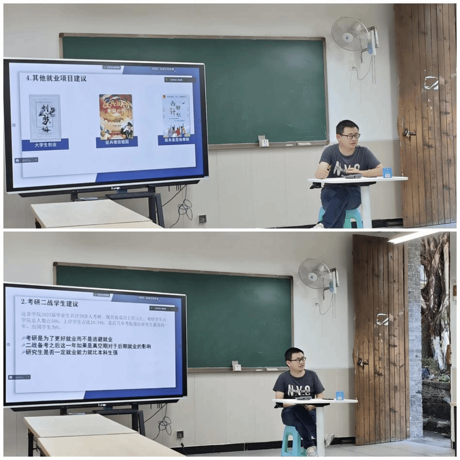 为促进远景学院2023届毕业生更充分就业,推动就业工作顺利开展,远景学院2023年4月19日16:00在菩提书院普通教室五开展了2023届毕业生就业工作推进会暨就业专项指导培训会,采取“线上+线下”联动方式,学院2023届80余名毕业生参与此次会议,特邀远景学院学工副院长李军老师为大家传授经验,答疑解惑。