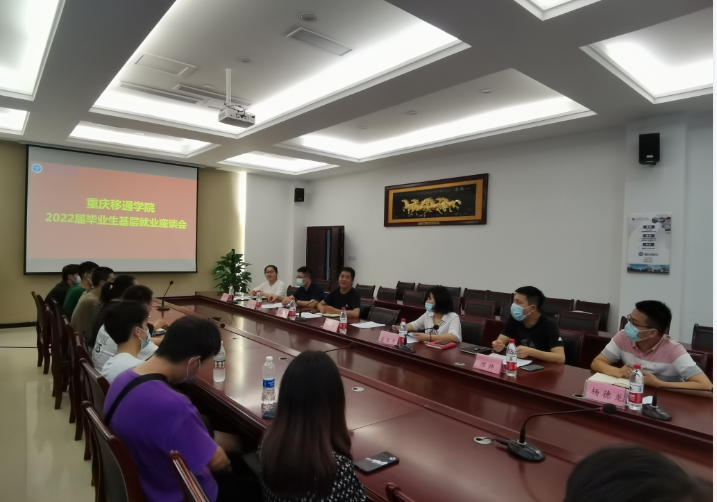 6月20日16:00,我校2022届毕业生基层就业座谈会在行政楼A107会议室举行。重庆移通学院校长助理陈仲华、学生处处长陈帅、团委副书记谢银平、就业创业指导与服务中心副主任佘桂隆、就业创业指导与服务中心主任助理杨德龙、团委刘月和2022届赴基层就业毕业生代表参加了此次座谈会。会议由就创中心副主任佘桂隆主持。
