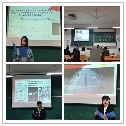 2020年,面对汹涌而来的新冠疫情,我们党团结带领全国各族人民,进行了一场惊心动魄的抗疫大战,经受了一场艰苦卓绝的历史大考,付出巨大努力,取得抗击新冠肺炎疫情斗争重大战略成果,创造了人类同疾病斗争史上又一个英勇壮举,铸就了生命至上、举国同心、舍生忘死、尊重科学、命运与共的伟大抗疫精神。为了更好地弘扬伟大的抗疫精神,我校思政教学部面向全校专门举办了“弘扬抗疫精神,筑牢家国情怀”主题征文比赛。12月9日下午4点,本次主题征文比赛决赛在1210教室顺利进行。参与此次活动的人员主要有思政教学部德育教研室全体教师、思想政治理论教研室教师毛光晨和肖峰老师、所有决赛作品的作者以及弘德宣讲团的同学们。