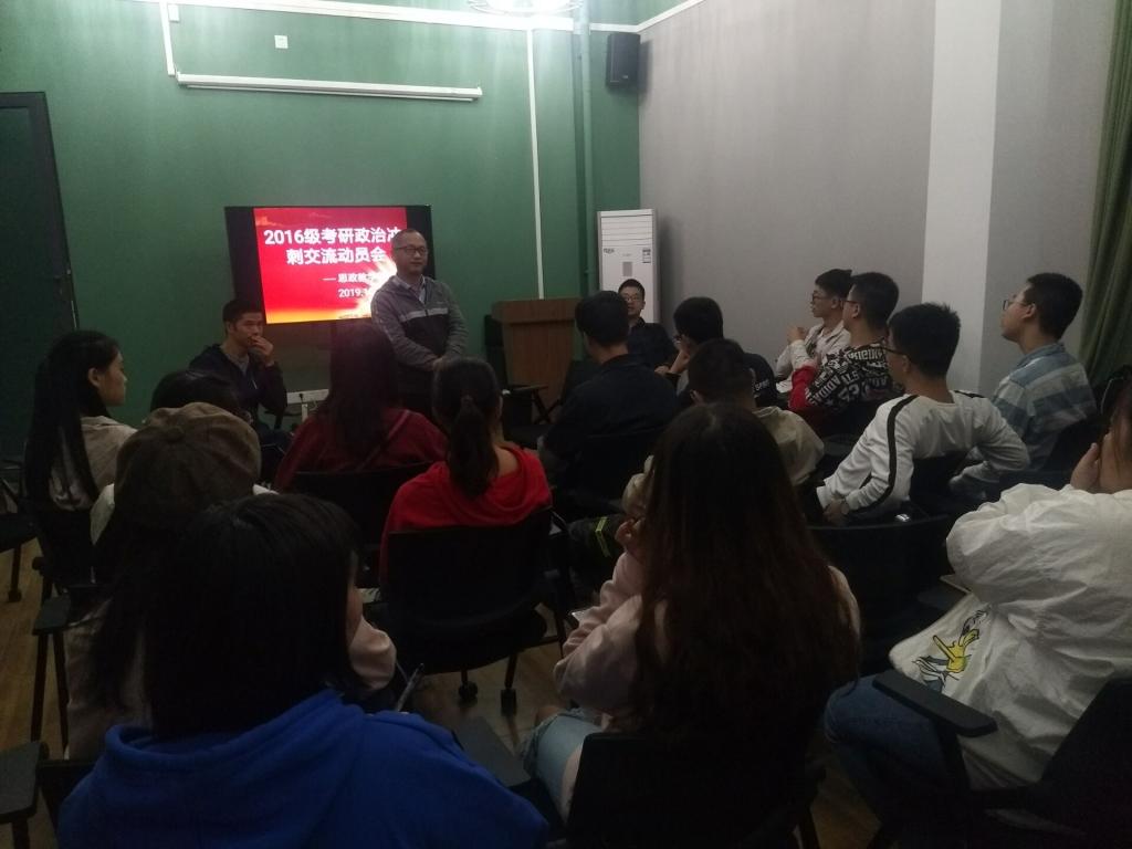 距离2020年全国硕士研究生招生考试开考不足三个月了,10月10日,思政教学部专门组织了一场考研政治交流座谈会,旨在帮助2016级学生更好地面对2020研究生考试,同时给予即将加入考研学弟学妹们以建议。思政教学部邹建平、杨勇、李阳、宁小可和李亚莉老师参加此次交流会。