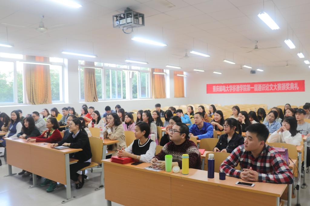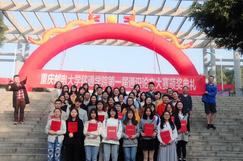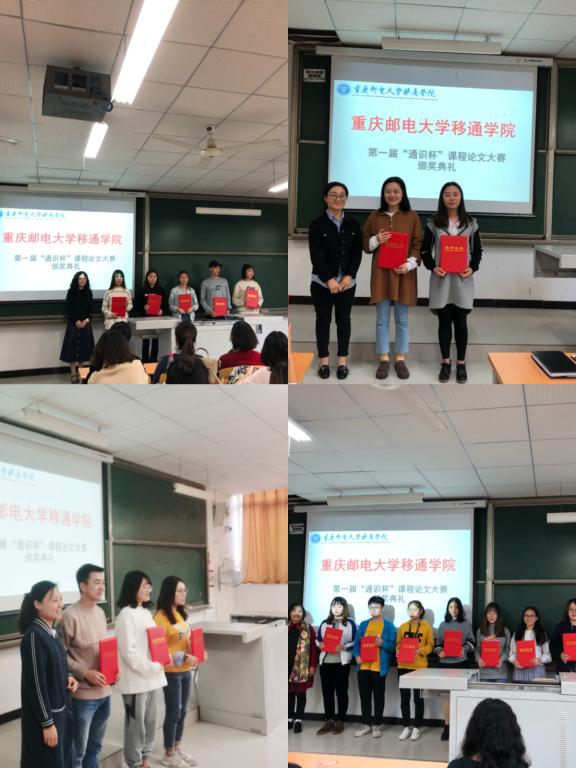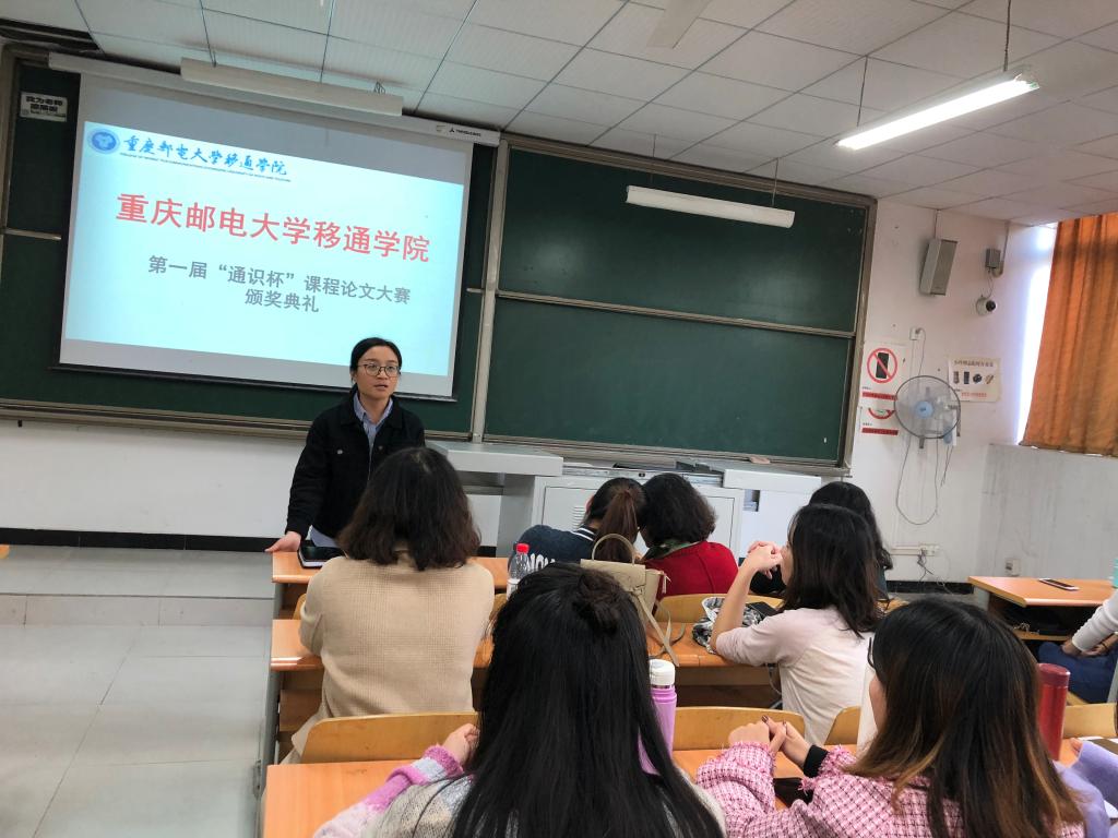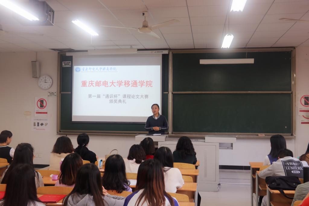 我院实行“三位一体”的人才培养模式,通识教育重在开阔学生视野,提升文化品位,培养学生的科学精神与人文素养,致力于促进我院学生的全面发展。根据《重庆邮电大学移通学院学生学科竞赛管理颁发(2016年修订)》,促进我院广大学生积极参加各类学科竞赛,鼓励各院(系、部)教师、学生参与竞赛,培养学生的创新精神,通识教学部积极筹备并成功举办第一届“通识杯”课程论文大赛并于 10月31日下午4:00在4202教室举行颁奖典礼。来自各个院系的参赛及获奖学生、通识小助理以及通识教学部全体教师齐聚一堂,共同见证同学们取得的优异成果。