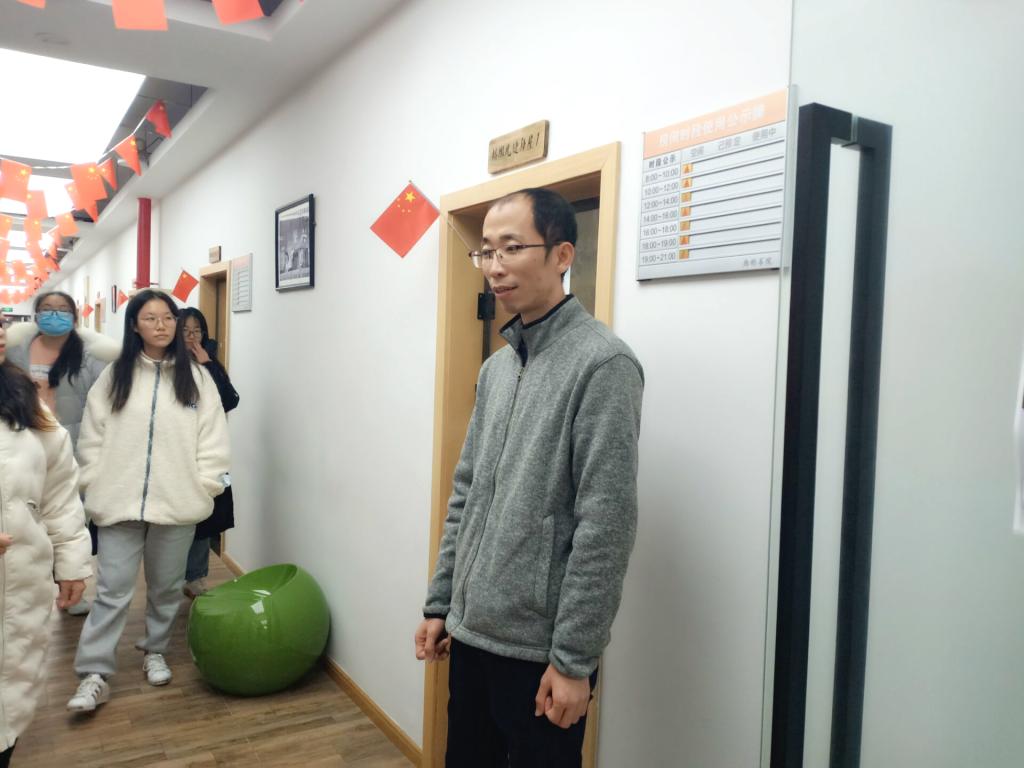 为让火星实践CEO郭剑楠了解商院文化,小伙伴们先带郭总参观了淬炼·国际商学院教学楼并来到了商院图书馆。在参观的途中,郭总表示他感受到了独特的商院文化,还对商科教育赞赏有嘉。