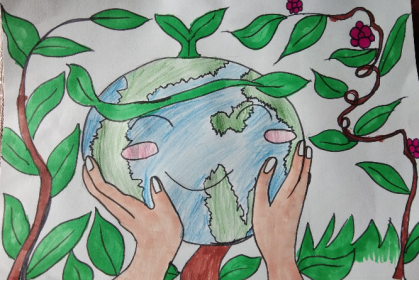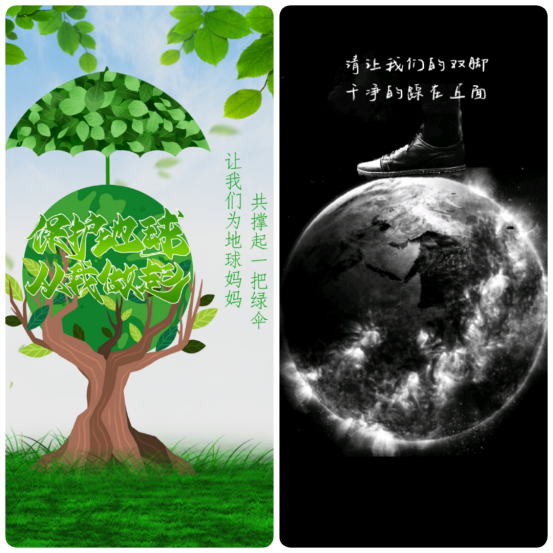 袁建同学所创作的是托起蔚蓝地球的一双手,他希望每个人能够从力所能及的事情来爱护地球;王辉同学描绘出一个充满绿色生机的地球,尤如从未被为污染过的一颗“绿丸子”;周慧萍同学则描绘了一个流泪的地球,以此警示人类活动已经对环境造成了巨大破坏,我们要更加注意保护好我们的地球;张年步同学则制作了一张关于黑色地球的海报,提醒人们地球污染越来越严重,每个人都应该努力帮助她恢复到以前美丽的样子……给大地铺上绿色的地毯,爱护青山绿水,呵护绿色家园。我们与地球同呼吸,共命运。珍爱环境,让大气清新,使天空蔚蓝,让冰雪在南北极“扎根”,地球应是这样的多姿多彩。