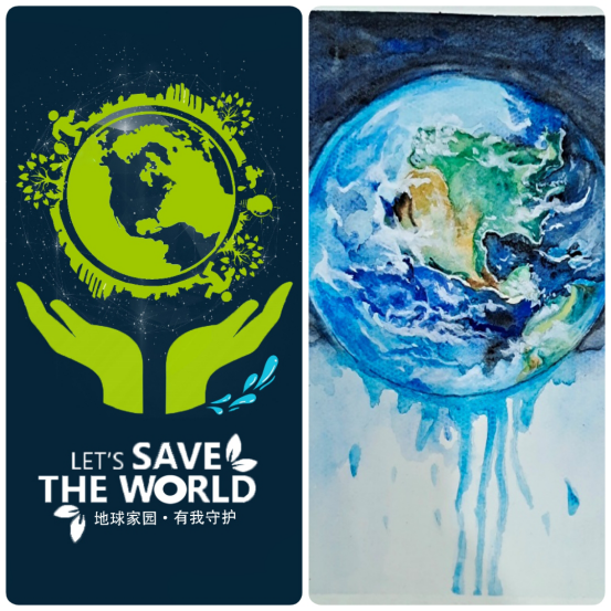 从太空俯瞰地球,地球外表呈现蓝、绿、白三色,而在每个人心中地球则是以五彩缤纷呈现的。活动中,同学们以地球为主要元素制作了多样式的海报和手绘,展示了他们对于保护地球环境责任与期许并希望带动更多的人参与到珍爱地球行动中。