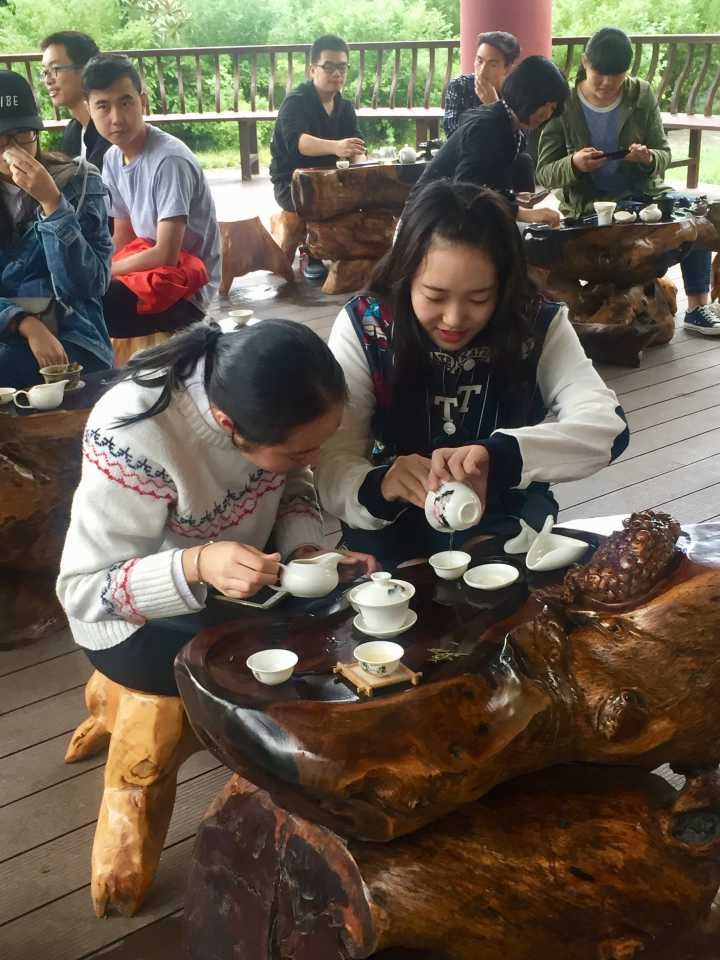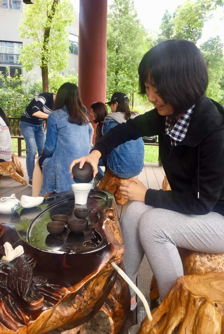 泡制过程中,从烧水到品茶,茶香早已四溢,茶叶颜色不断变化,一种奇妙独特的感觉油然而生。亲眼看见茶叶慢慢的疏张开来,散发它的味道。在这一片寂静的氛围中,耳边只传来鸟儿的叫声,茶宝宝们都自然“醉”在其中,享受茶文化,和泡茶的乐趣。