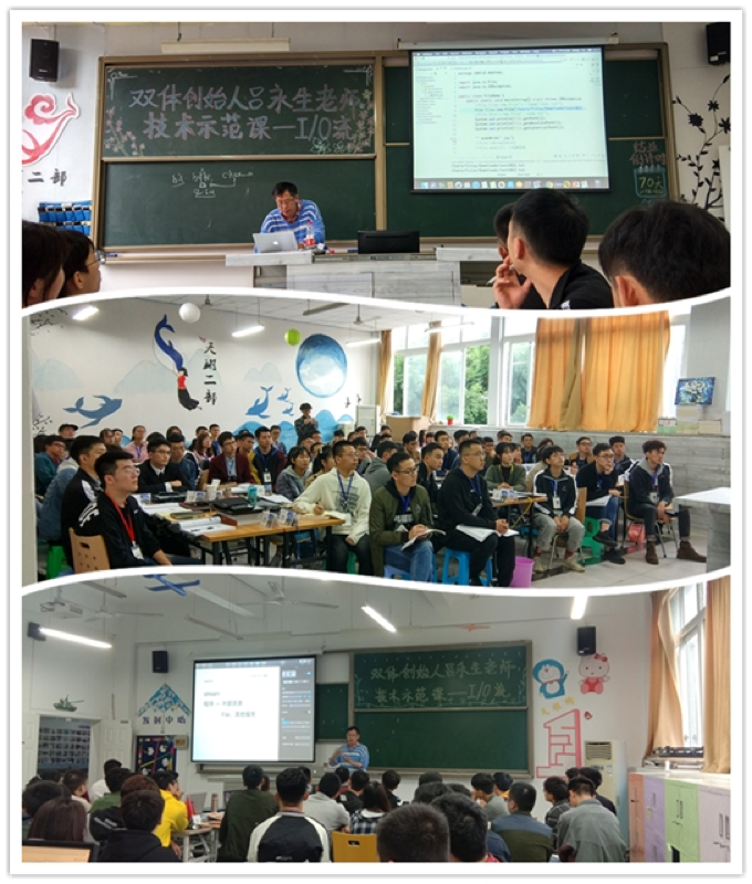 2019年10月21日-23日,双体系创始人吕永生老师莅临我校双体系卓越人才教育基地进行了为期三天的交流工作。分别对企业最新开发流程、技术课程体系优化、职场教学设计、职场教学工作部署进行了交流与探讨。同时,这三天里分别为双体学员带来了三场精彩的课程,为双体系学员指点迷津。