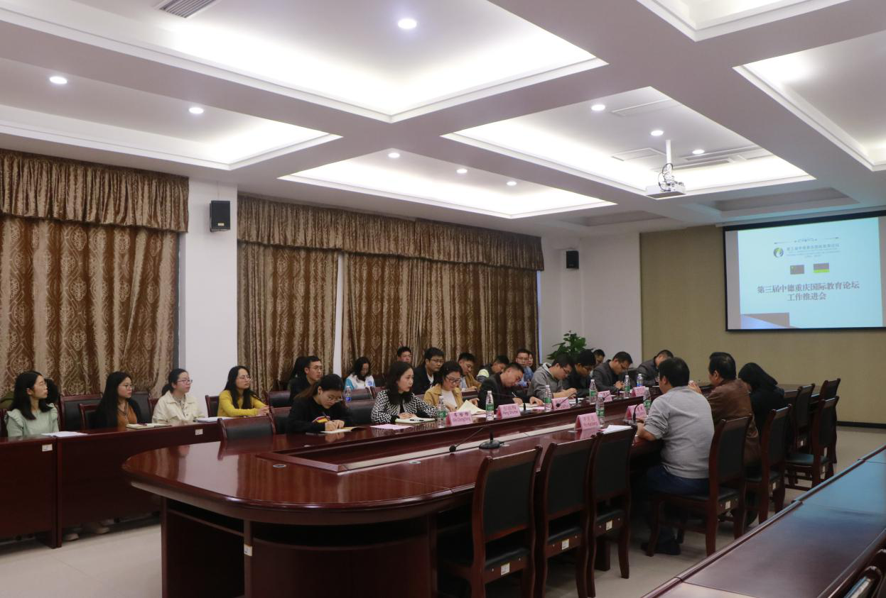 10月24日,为落实中德教育论坛准备工作,确保论坛顺利举行,我校召开关于第三届中德重庆国际教育论坛的工作讨论会议。校长张德民教授、校领导、各部门相关负责人以及中德教育论坛工作小组参加了本次会议。