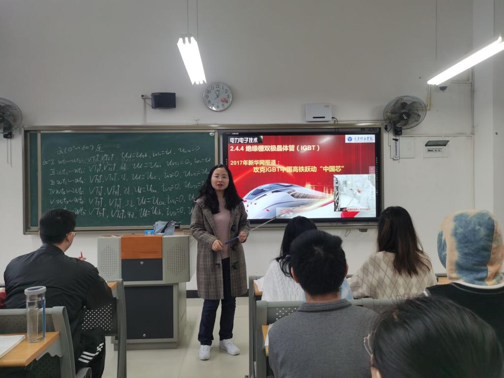 在《电力电子技术》课程中,主讲教师李洁老师在课堂上多次给学生分享国产功率器件发展大事件,通过润物细无声方式,渗透式培养学生家国情怀。例如在讲到IGBT器件这一节时,给学生讲述以中车时代为代表的国内企业经过几十年研发,攻克IGBT技术难关,使中国高铁跃动中国芯,终在功率器件领域占有一席之地,打破大功率器件完全依赖国外进口状态,从而激发学生爱国情怀。