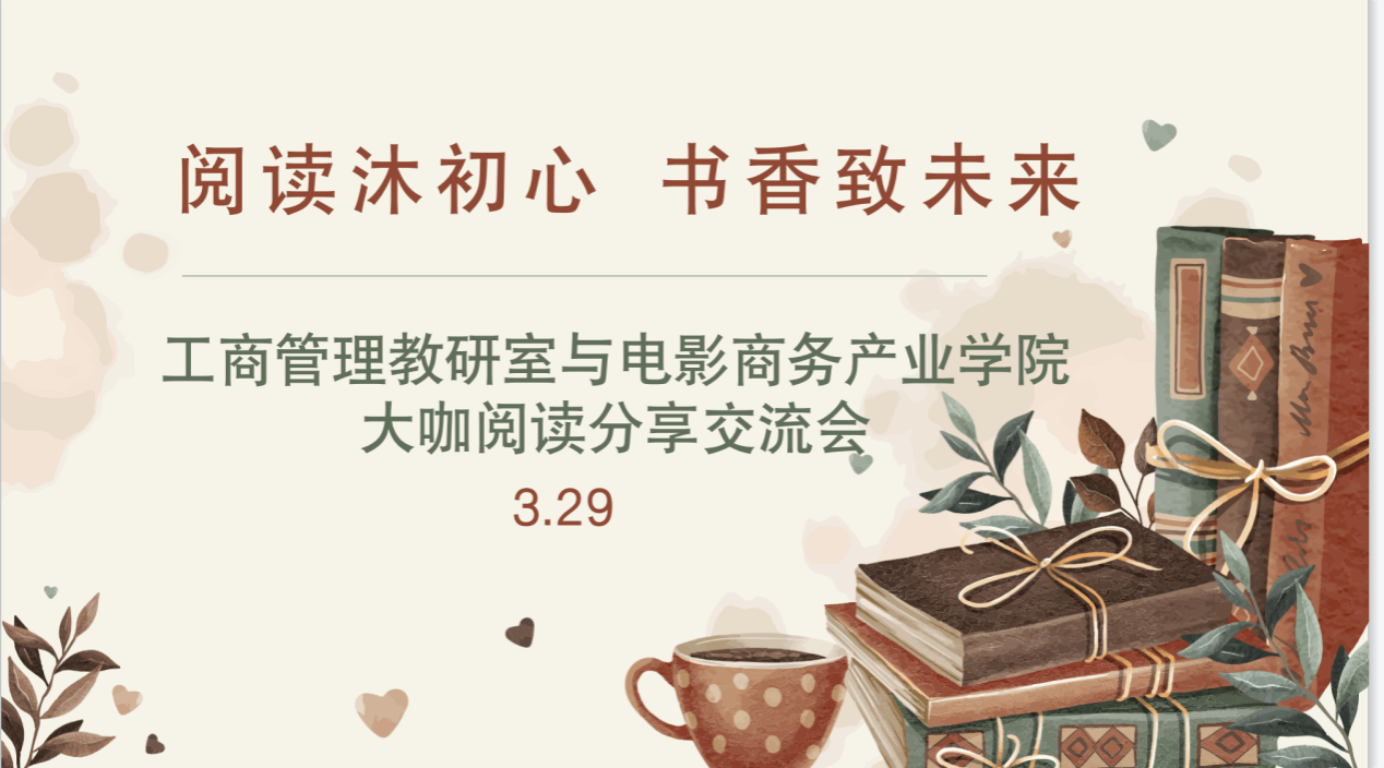 梁启超说,“ 读传记,最能激发人志气,且于应事接物之智慧增长不少,古人所以贵读史者以此。”从某种程度上来说,阅读商业传记,就是一次门槛最低、价值最高的与企业家“直接对话”的机会。3月29日下午14点,工商管理教研室和电影商务产业学院全体教师齐聚在南湖书院圆桌会议室联合开展了大咖阅读分享交流会,会议由工商管理教研室主任杨宝石老师主持。
