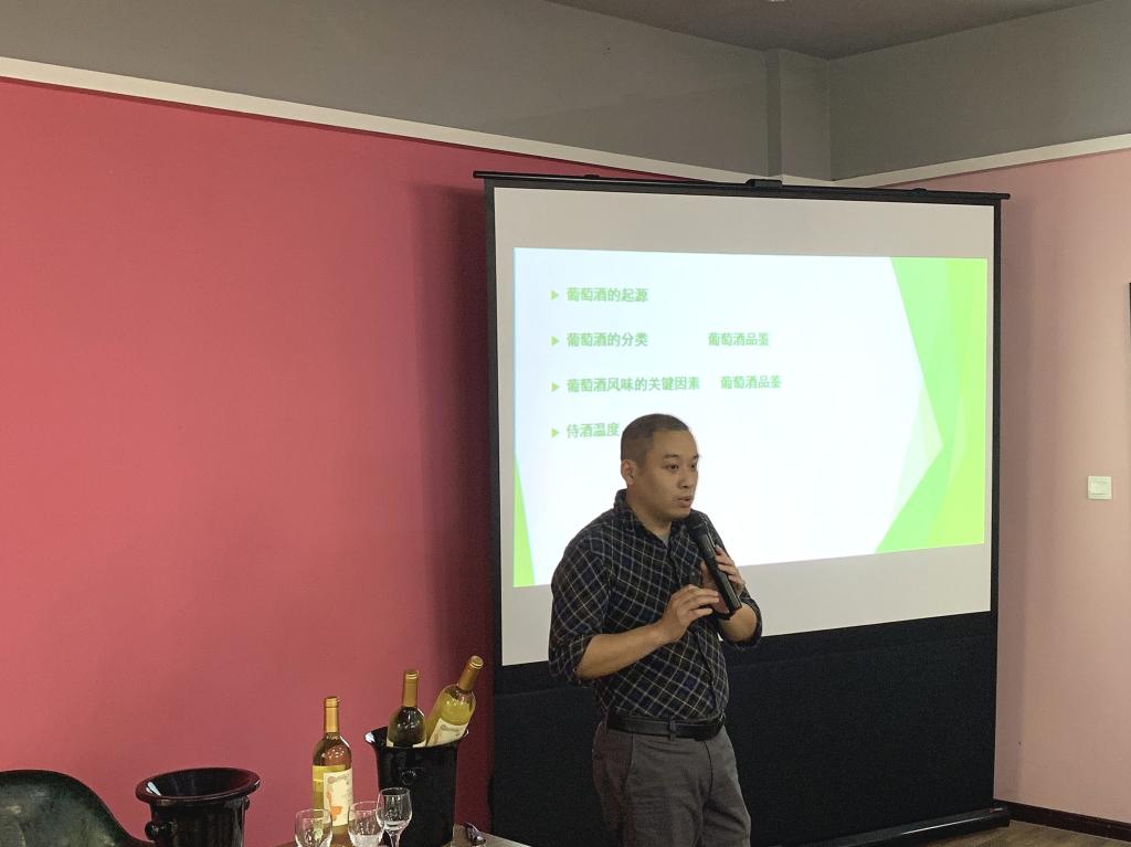 “你们知道葡萄酒的发源地吗?”方靖老师在正式进入红酒讲解之前抛出一个问题。经过同学们一番猜测,“意大利!希腊!”,方靖老师揭晓了正确答案——“高加索地区的格鲁吉亚”——葡萄酒最早的发源地,并通过葡萄酒的起源、分类、影响葡萄酒风味的各个因素、侍酒温度等四个方面为同学们进行葡萄酒的专业知识讲解。