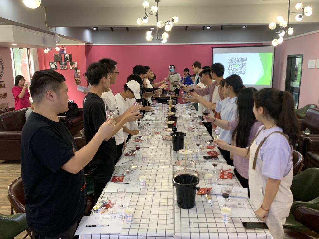 熟悉的场景品鉴别样的风味,三种不同的葡萄酒带给同学们不一样的体验。伴随着时间的流逝,来到了本次活动的尾声,方靖老师为我们进行了总结,并科普了生活中关于葡萄酒的各种礼仪,如倒酒礼仪、葡萄酒与美食的高级搭配方法等,同学们收获颇丰,共举杯中酒,直呼“涨姿势了!”。
