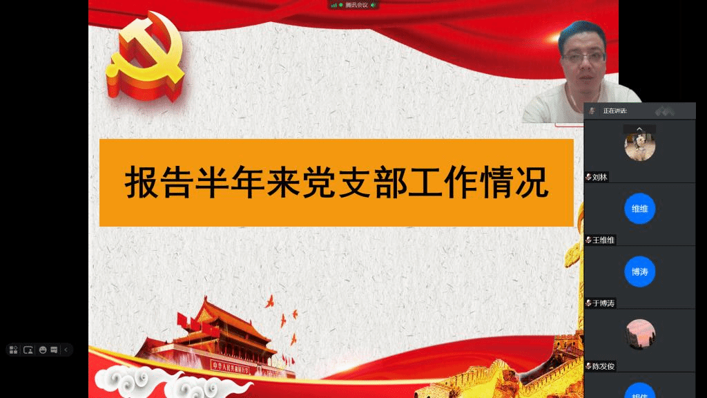 会议一开始,支部书记何燕同志首先带领全体党员同志学习了“习近平总书记在庆祝中国共产党成立100周年大会上的重要讲话内容”。何燕书记还要求全体党员提高认识积极参与,严格程序从严从实进行批评与自我批评。随后党支部副书记杨青松向大会汇报了党支部半年来的工作情况,重点汇报了支部党史学习教育的开展情况。