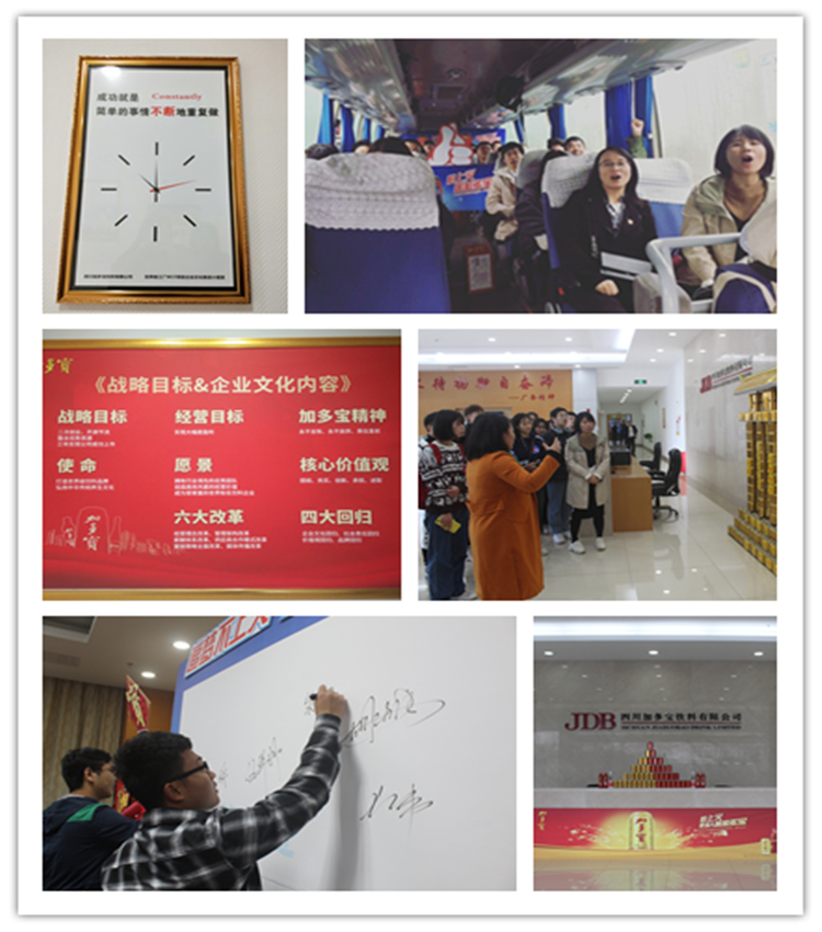 随着社会主义市场经济的发展,一些劳动密集型、服务密集型的产业对于实用型人才的需求明显增大。培养高素质的职业型人才,一方面能够满足企业发展的需求,另一方面也能解决学生就业难的问题。大数据学院2020届就创工作促进会召开以后,为帮助学生迎来更好的未来,给同学们提供新思路和新选择。 2019年10月26日上午8时,重庆邮电大学移通学院大数据与软件学院学工办主任任瑞娟老师、创业指导老师龚仲颖老师以及校园社团活动指导老师齐婷老师,带领40名同学前往四川省资阳市加多宝饮料有限公司工厂,开启一次加多宝凉茶文化之旅。