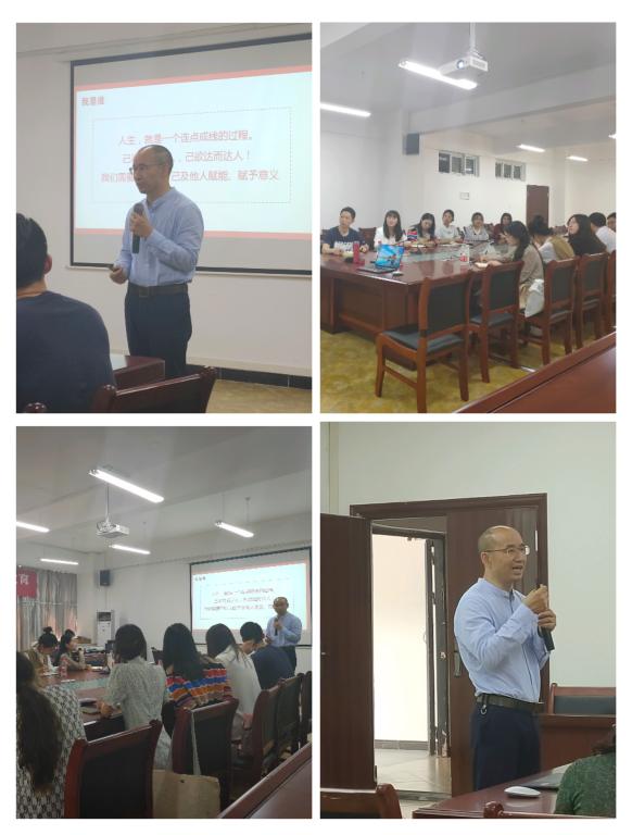 讲座开始前,杨寒老师为各位老师分享了这样一段话:“人生,就像一个连点成线的过程。己欲立而立人,己欲达而达人!我们需要不断为自己及他人赋能,赋予意义。”杨寒老师还以自身的经历为例,呼吁各位老师可以采用创新创业的方法去学习、工作、传授学生甚至是生活!而对于学生的就业创业教育问题可以从自身的现有资源出发,建立团队来达到一定的目标。杨老师还提出大学生职业规划的相关任课老师应当要求学生去适应,创造出一定的差异化,每个人都可以找到属于自己的方法。