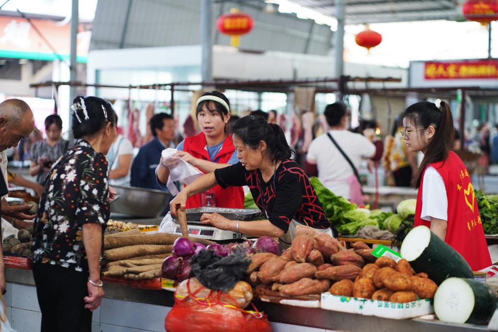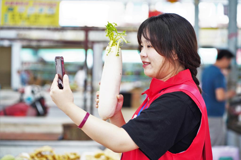 团队成员适应新形势,敢于尝试新方法,利用互联网新媒体与外界沟通,借助“赶集”契机主动走进何埂镇集市,与商贩交流过程中感受丰乐文化习俗、了解村民生活习惯,潜移默化地将乡村振兴的观念深入人心。利用“电商直播带货+线下”双线营销模式赋能农产品产销,以低成本渠道帮助村民缩短中间环节,助农增收致富。以服务实践彰显青年担当,贡献青春力量。直播点赞成果突破4.6万,助力商贩增收400元。在更多地了解到丰乐村的同时,也为团队后期开展青年助力乡村振兴活动打下坚实基础。