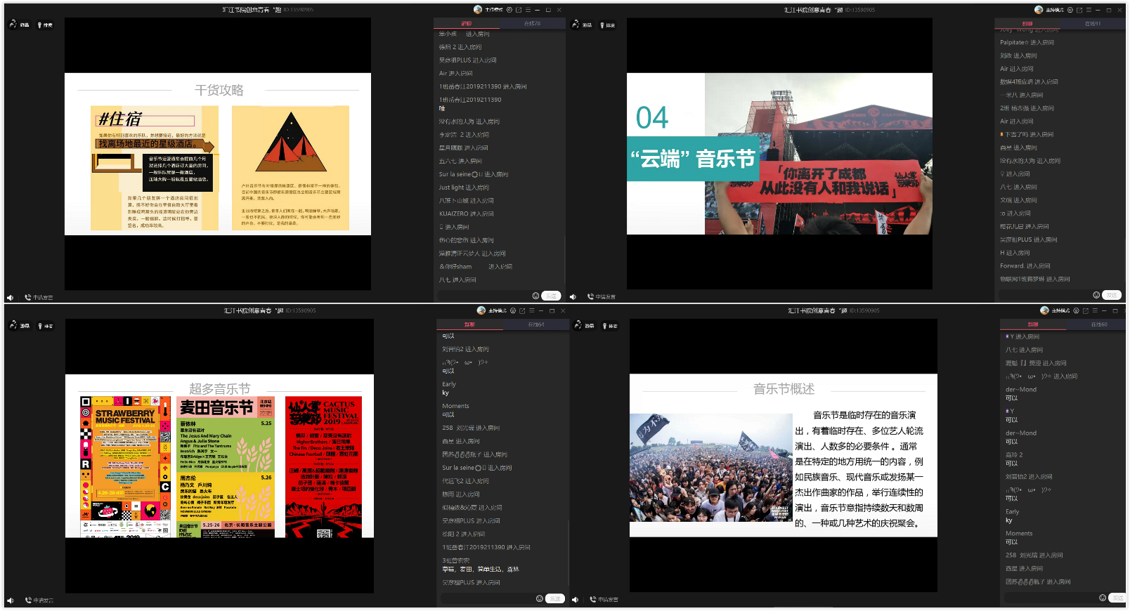 随着在国内的发展日趋成熟,参加音乐节也成为了同学们喜爱的休闲方式。游老师随后为同学们带来了玩转音乐节的“干货攻略”。早鸟票有什么好处?吃住行要如何安排?除了音乐,现场还可以观赏些什么?衣着风格如何选择?同学们带着疑问聆听游老师的讲座,收获了满满的乐趣和暖心小tips。游老师讲到,如今由于疫情的因素,许多音乐节都已经取消,但是为了满足人们的需要,在线上举办的“云端”音乐节应运而生,巧思创造出了新类型的音乐节。