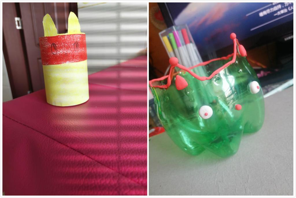 随着生活的发展,我们身边的浪费越来越多,只要我们有发现的眼睛,利用一切能利用的东西,就能变废为宝。在随后的分享环节中,大家都把自己做的花瓶展示了出来,充分体现了奇思妙想。
