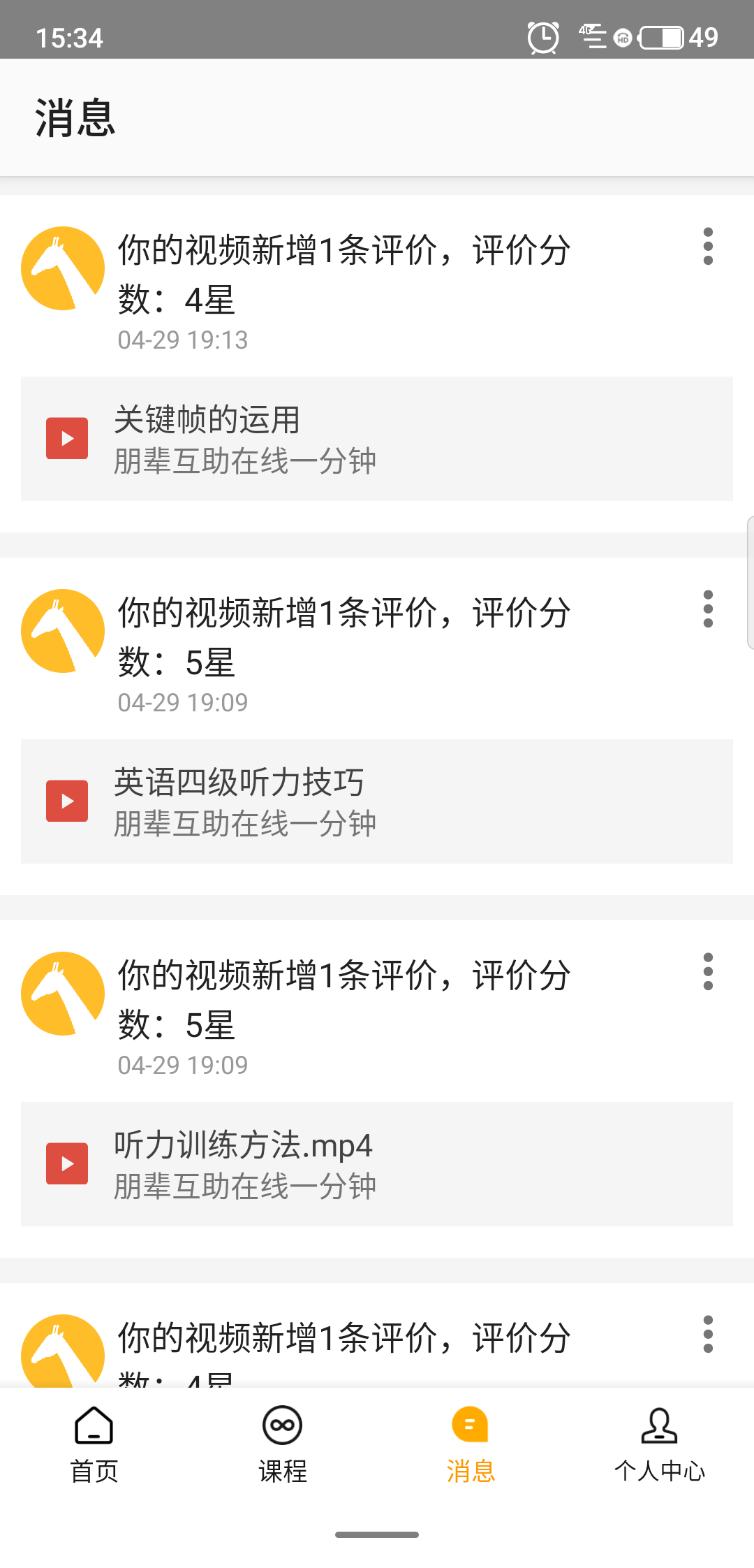 通过对学员持续跟踪及调研,四月以来,在朋辈学长团成员的精心制作下,上线了学习类教学视频8个、兴趣技能提升类视频8个,涵盖大学英语四级、高等数学、PS、PR、计算机五大类,学习人次为204人,整体视频评价为4.29分。