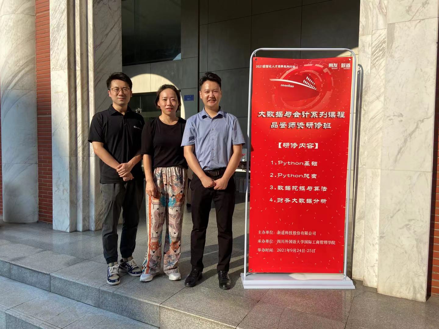 在中国共产党建党100周年及我国“十四五”规划加速数字经济发展的大背景下,教育紧扣时代脉搏加速人才供给侧结构改革,陆续发布多项教学改革引导政策,全面深化课程改革,落实立德树人任务。为了提升“教改深处课程”质量,发挥产教融合互补优势,切实解决大数据融合课程案例设计难、技术学习难、师资队伍难、教学实施难等挑战,财务管理教研室骨干教师李晓敏、王长铎,于9月24日至四川外国语大学参加为期两天的教研交流会,围绕新专业教改“大数据与会计系列课程品鉴活动”,学习并研修了包含“Python 基础”、“数据挖掘与算法”、“Python 爬虫”、“财务大数据分析与决策”等专业课程。