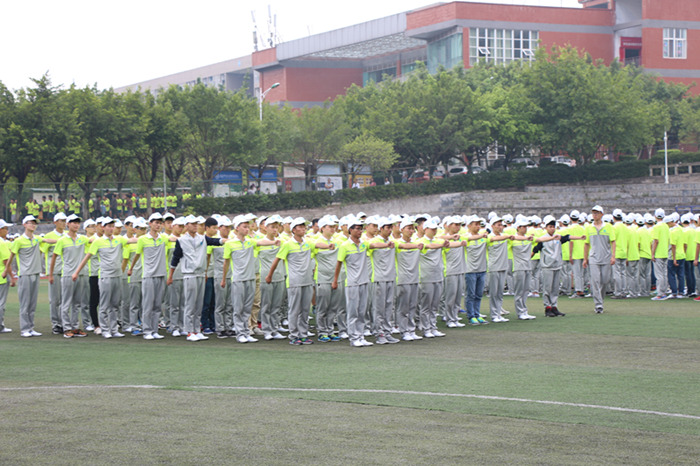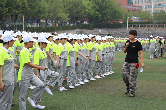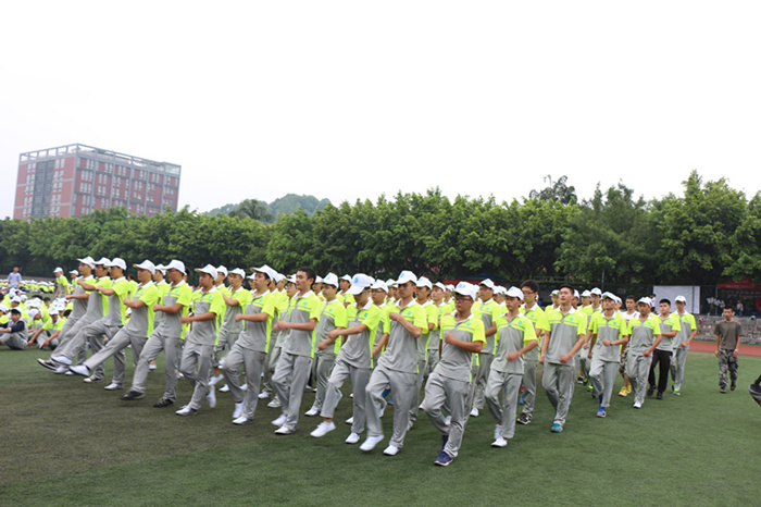 新生们穿着校服在操场接受着大学的第一次洗礼,从27日开始,新生们就告别暑假的懒散,进入军事化的管理,起早贪黑的在操场接受军训。教官的口号回响在操场“起立、稍息、蹲下”新生们做出对应动作,整齐划一,这就是移通一个整体。