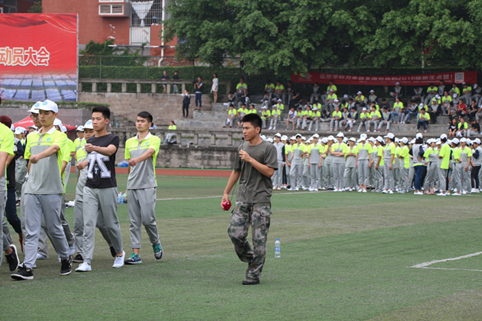 炎日后的重庆,天公总是爱开玩笑,不一会儿,天空飘起细雨。细雨湿了草地,湿了树叶,也打湿着操场训练的新生与教官们,可他们依旧坚持着,嘹亮的口号也没有被雨水所浇灭。
