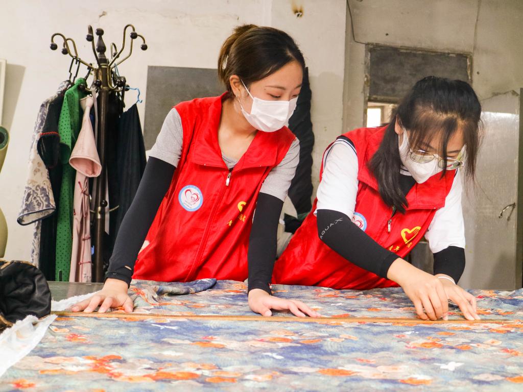 在蒋玲均、张玉梅、李绅源等老师的指导下,实践团进行了旗袍尺寸勾画、剪裁等实践操作;并且,男生穿上中式男装,女生穿着旗袍,实践团真真在在的感受了传统服饰的魅力,非遗的底蕴。