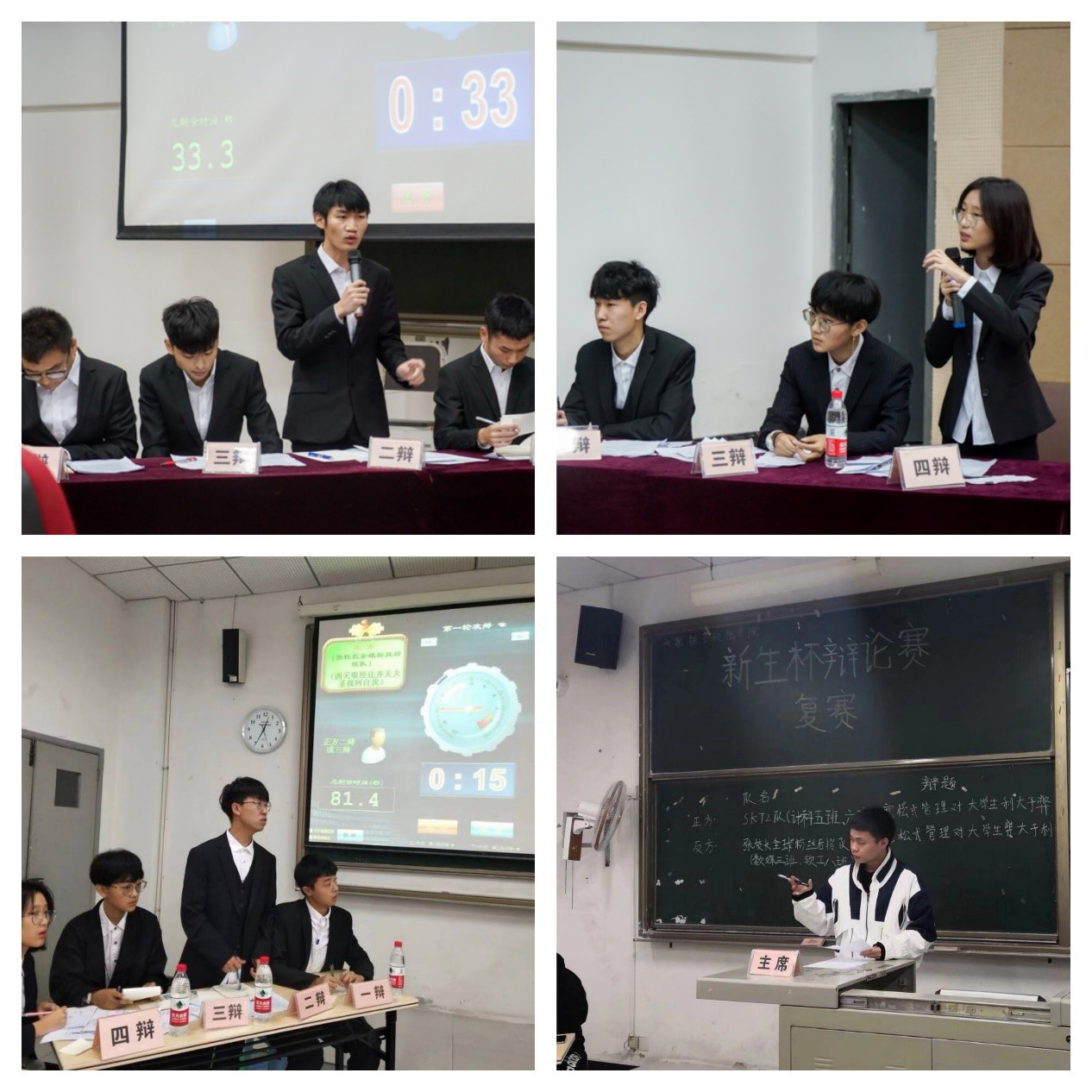 淬炼商学院体察当代大学生在大学如何成长与发展;艺术传媒学院与管理工程学院注重网络舆论与网络发展方向进行思考;大数据与软件工程学院关注的是社会环境、硬件设施、人文地理、以及平台与机遇等问题;智能工程学院则强调道德文明是当代社会不可或缺的;通信与物联网工程学院站在女性角度去权衡学历与家庭;外国语言文学系探讨“行”与“知”的难易问题。一场激烈的唇枪舌战,一场没有硝烟的战争,就这样打响了。