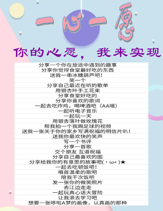 小小心愿卡已准备完毕,组织者发布群抽签,每位同学随缘抽取自己的心愿,同时也添加对应同学的联系方式进行相互了解。活动到了最为让人惊叹的时刻,168位参与者当中,有两位本就认识的同学,无意之间为对方完成心愿,这或许就是命中注定的缘分,但这只是这次活动中美好的一幕。本次活动帮助大家结实志同道合、心意相通的朋友,为很多人完成心愿,也让更多人收获到感动。