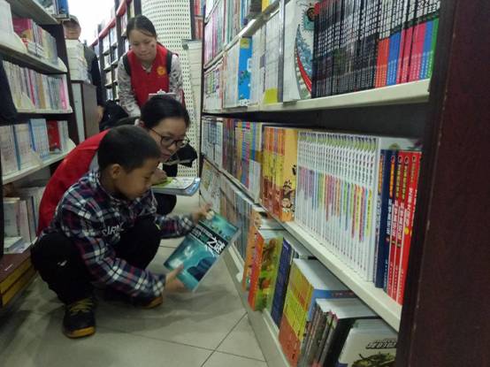 (志愿者邀请留守儿童来缤果城少儿图书馆阅读)