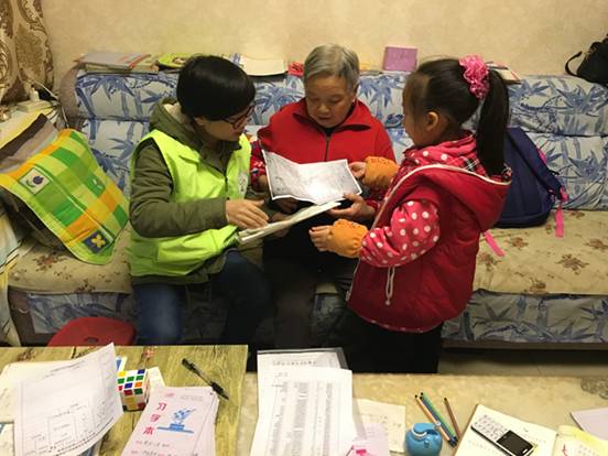 在2017年12月24日外语系的志愿者收获了一群志同道合的伙伴,与社区、社工一同合作,志愿者负责小朋友们的课业,社区负责小朋友们的家访、社工负责小朋友们的心理健康,从三个方向来帮助小朋友们。从自己组织开展活动到与社区对接;从单一的学生志愿者到如今与专业社工组织合作一同为志愿服务献出自己的力量。通过采取全面、更深层次的帮扶措施,更好地开展校社共筑欢乐童年——关爱农民工子女项目。