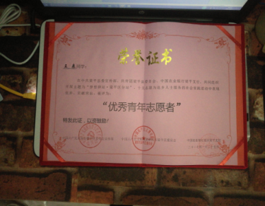 他服务的是广大人群,只要有人需要,他就会去帮助一把,王森觉得服务他人,看到他人的微笑,或者得到一句谢谢,心里就会很满足,在团队的帮助下,我尝试的突破自我,说话不紧张,去积极的帮助需要帮助的陌生人,哪怕被拒绝,我也有过抱怨,但是为他人亲手送上我的祝福与温暖,王森就会很开心。