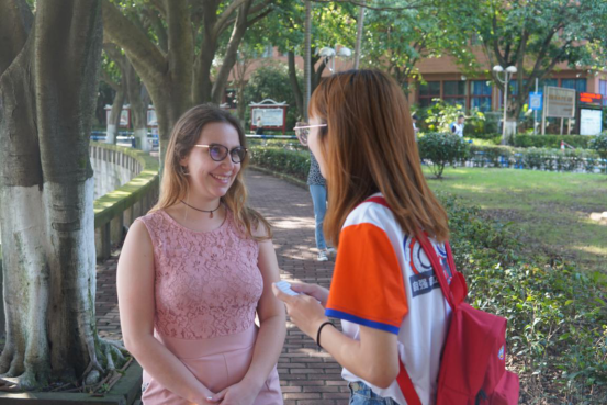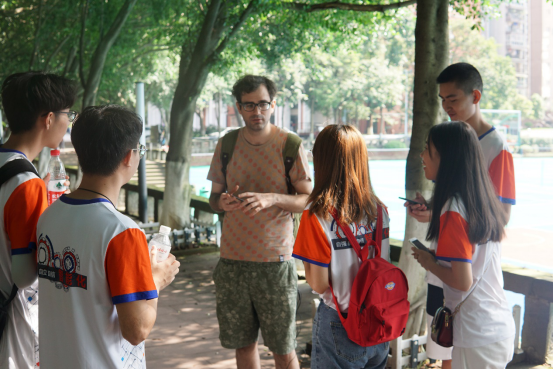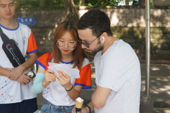 采访完成后,团队们又前往磁器口和四川外国语学院,寻访“一带一路”沿线国家的青年朋友,向他们推广我们探寻而来的美丽文化和古老故事。受采访的多数外国青年都表现出极大的兴趣,在对他们的访谈中,铜梁火龙、合川峡砚等非遗文化的魅力引起了他们的注意,印有非遗文化表演的照片,在队员的讲解下,他们逐渐了解非遗文化,其中一位外国友人对于送给他的非遗文化照片爱不释手,他说:“我喜欢中国,有时间我一定要去看看,我会好好收藏这张照片的”,合影留念时也紧紧的纂住那张照片,眼中露出那满怀期待的眼神。