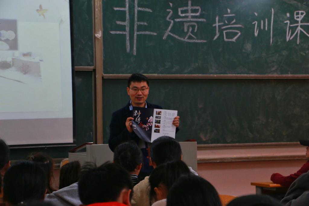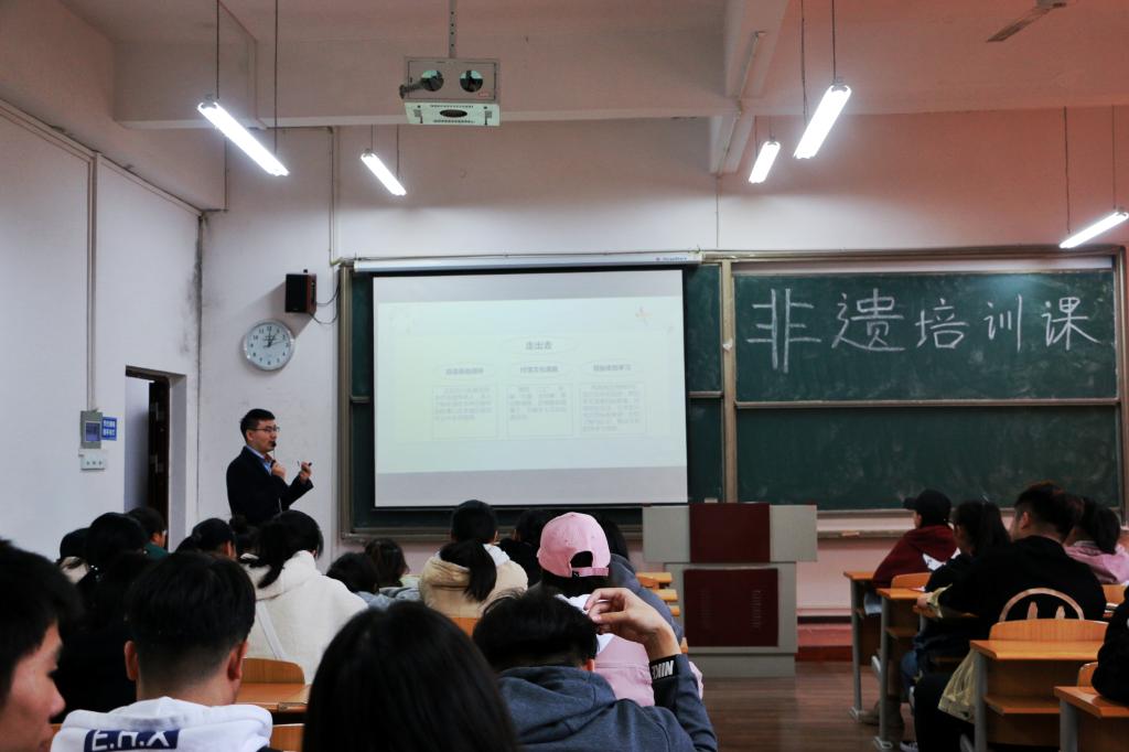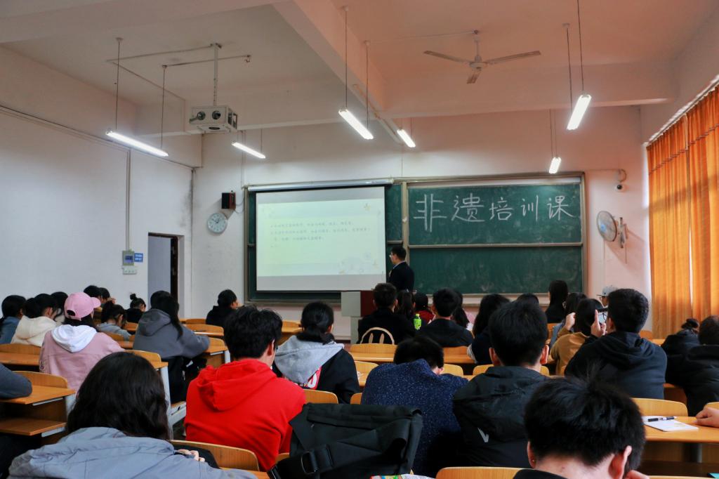 在培训课的尾声彭老师对同学们提出了殷切的希望,作为大学生的我们应积极参与地方非物质文化遗产的挖掘、研究和传习工作,成为地方文化的挖掘者和传播者。文化贵在传承,薪火相传,让非遗的创造力、民族力、凝聚力深深地融入现代社会中去。非遗传承的任务已经来了,让我们一起努力。
