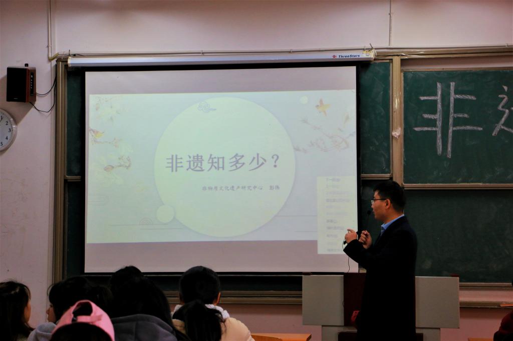 11月7日,非物质文化遗产专题知识讲座在学校7213顺利举行。本次讲座对学生了解非遗概念、明确非遗范围、理解非遗传承的艰辛以及如何进行非物质文化遗产传承与创新,具有非常重要的指导意义。讲座由非物质文化遗产研究中心彭伟老师做了题为“非遗知多少?”的专题讲解,非物质文化遗产研究会的全体学生研究员参加了本次非遗知识讲座。