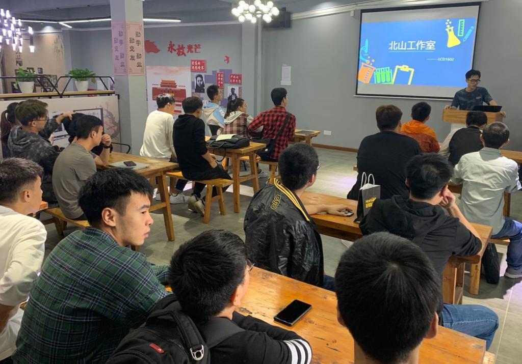 为提升书院“朋辈圈层”建设质量,巩固拓展“双院制”的联动融合,2019年,北山书院和通信与物联网工程学院联合发起成立“北山信息科学工作坊”,一群来自不同年级、不同专业,却志同道合的同学组成的群体,在这里以实践为主,将所学课本理论知识进行落地,从而提升动脑、动手能力。他们的学习内容主要包括C语言的学习与运用、电路相关知识的学习与运用、微处理器与嵌入式系统的软件编程及硬件搭建。2020年,学业导师正式入驻北山信息科学工坊,工坊师资队伍逐渐扩大,经过为期一年的沉淀,学业导师的倾力助阵,工坊的实力与影响力得到了进一步提升。