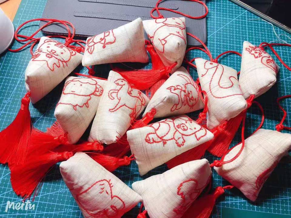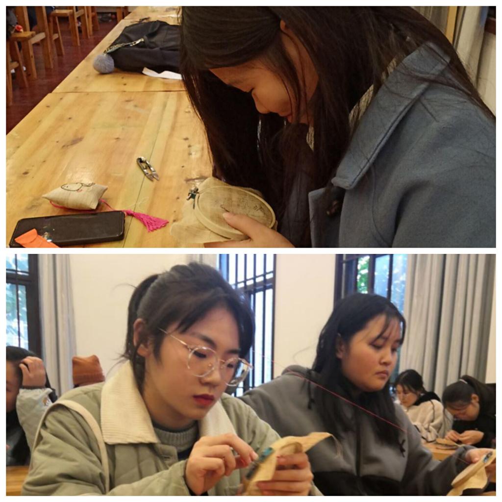 单大琼老师要教给大家的十二生肖的挂饰和双面绣扇子的刺绣技艺,“鼠、牛、虎、兔……”这些可爱的动物也代表着中华传统刺绣和中国特有的生肖文化结合起来。每个同学拿到的作品都不尽相同,绣工比较出色的优秀学生研究员学习的是用单线绣双面绣,绣法繁杂精致,双面绣是汉族优秀的民族传统工艺之一,在同一绣制过程中,绣出正反两面,轮廓完全一样,图案同样精美。