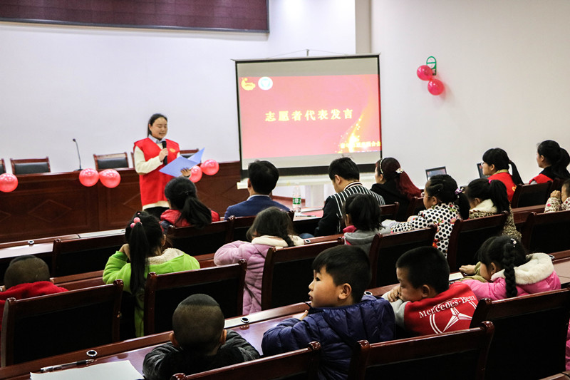 开班仪式正式开始,“筑梦”成员申曲艺作为志愿者代表上台宣讲,“半年前的暑期‘三下乡’社会实践活动。让我们结缘,今天,我们回到这里,希望再次用我们的努力和真心给可爱的孩子们的一个快乐的童年,与他们在成长的路上一同前行……”