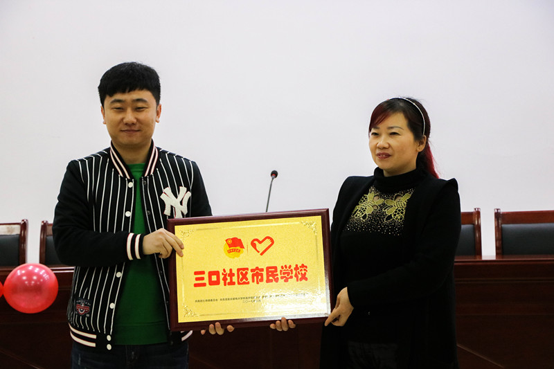 最令人激动的自然是三口社区市民学校授牌仪式,土场镇三口社区副主任邵主任与重庆邮电大学移通学院团委岳振远老师共同举牌,伴随着歌曲三口社区完满课堂市民学校正式成立,此时志愿者感到的事无比的荣耀。