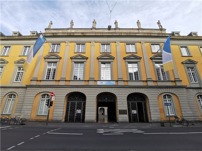 接着我们参观了同样位于波恩的波恩大学(波恩莱茵弗里德里希·威廉大学)。这是一所世界一流的公立大学,她的前身是创建于1777年的科隆公国学院,是18世纪启蒙运动的产物。作为德国最杰出的综合性大学之一,波恩大学自建校以来培养了包括7名诺贝尔奖得主在内的众多优秀的毕业生。包括德意志皇帝威廉二世、联邦德国第一任总理阿登纳、马克思、哈贝马斯、海涅、尼采、贝多芬等众多历史名流都曾在波恩大学求学或访学。波恩大学是十一所德国精英大学之一,她以其卓越的教学和科研实力蜚声世界。若能在有如此美丽景色和浓厚学术氛围的校园里学习,想必是非常荣幸的体验。