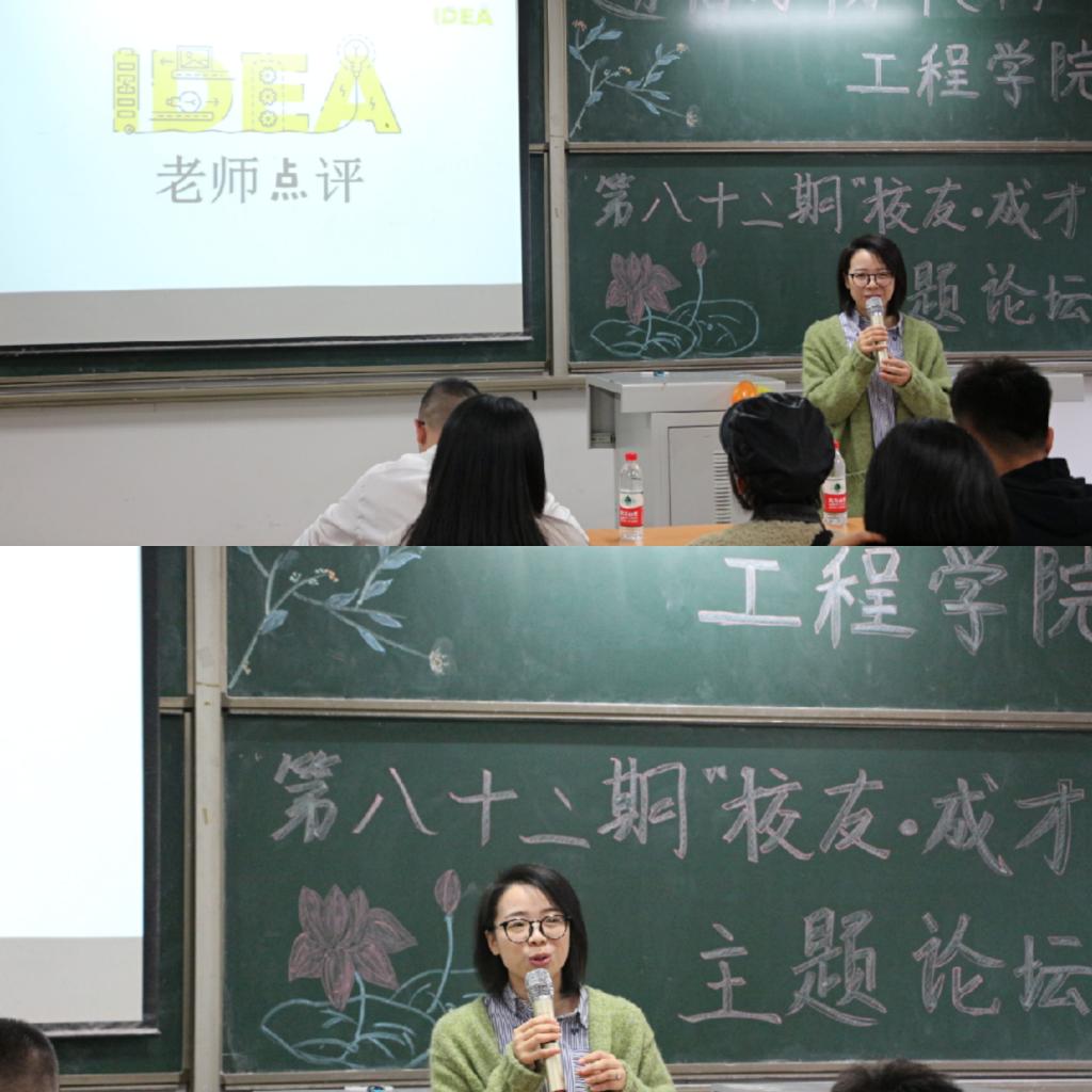 姚锐校友指出“我能取得现有的成就,离不开母校的基础培养和老师的关爱照顾,感谢学校完满教育塑造了一个完满的我,让我跨专业找到自己满意的工作。”“我真心地希望同学们能够在大学里不断充实自己,为以后的就业道路做好铺垫。”姚锐校友真诚寄语之后,就业创业指导版块指导老师蒋益老师为姚锐校友颁发聘书,表达母校对返校校友的肯定及关心。
