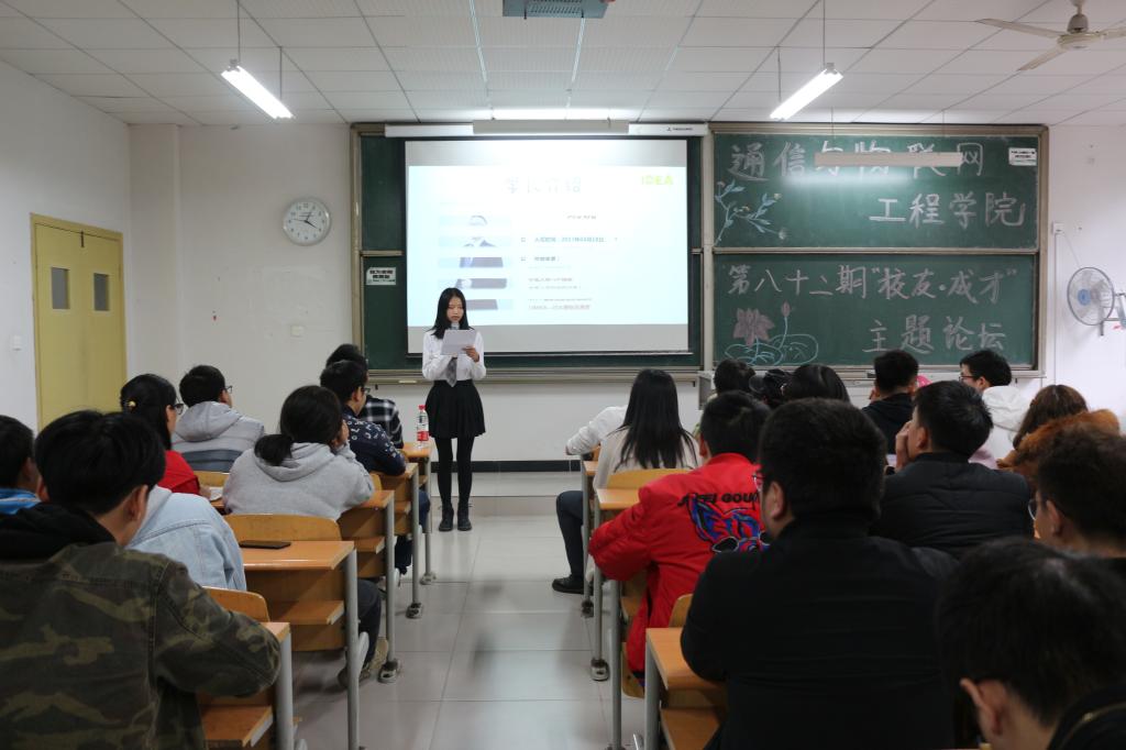 19年的风雨兼程,19年的携手并进,我校培养出了一批又一批德才兼备的优秀学子。为了增强同学们的就业意识,帮助同学们做好职业生涯规划,通信与物联网工程学院于2019年11月13日16:00在第四教学楼4204教室举办了校友成才主题论坛活动,此次活动的主讲嘉宾是2013级通信工程专业的姚锐校友,现就职于中意人寿保险有限公司,主要负责团队管理和市场营销,现担任集团业务经理职务,年薪超30万,事业上已经小有成就。本次活动姚锐校友从自身经历讲起,缓缓为同学们讲述当前社会下的就业形势及压力。