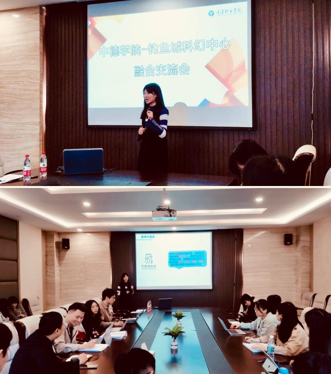 活动伊始,程晓娇副主任从董事长的寄语出发,将我校科幻教育理念娓娓道来,从中引出钓鱼城科幻中心未来的发展定位。随后,程晓娇将钓鱼城科幻中心肩负使命、开展项目、主要成员以及科幻空间塑造等情况一一做了详细介绍。经过交流,中德学院教师们了解到钓鱼城科幻中心拥有钓鱼城科幻大奖、未来小说工坊、四级课程体系等全方位多角度的发展模式。旨在打造完全公益性、高度国际化的亚洲最大科幻中心,同时以学生为中心,与校园化科幻教育相融合,开展本科生领域科幻专业教育。