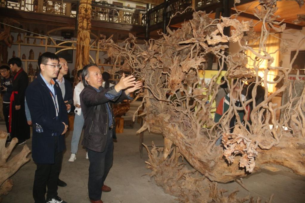 为了让同学们更好的去了解与认识合川根雕制作技艺,为了更好的传播、继承、发扬根雕艺术的文化内涵。11月10日,非物质文化遗产研究中心20余名学生研究员,在彭伟老师的带领下,前往北碚区天府镇彭勇根雕博物馆开展调研活动。