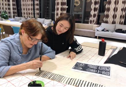 本次精品课堂吸引了大批书法爱好者,大家热情高涨,课堂变得十分有趣,我校外教老师Jocelyn也闻讯赶来,在社长的悉心指导下从简单的线条基础着手,与大家一同学习书法字帖《韭花贴》。顿挫有序的用笔,曲而有直体,直而有曲致的线条,笔势流速不徐不疾,以平稳而略带跌宕起伏的节奏,在宽绰疏朗的天地间向前推移运动,澄波微澜,既随物以婉转;风行水上,亦与心而徘徊。